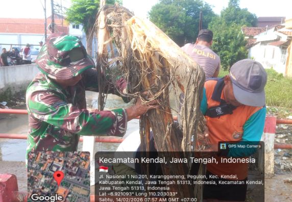 KEGIATAN GOTONG ROYONG BERSIH-BERSIH SUNGAI MASJID AGUNG KENDAL BERSAMA KAPOLRES DANDIN DAN DLH BESERTA PELTONNYA , MASING-MASING 1 PERSONIL PERKELUR