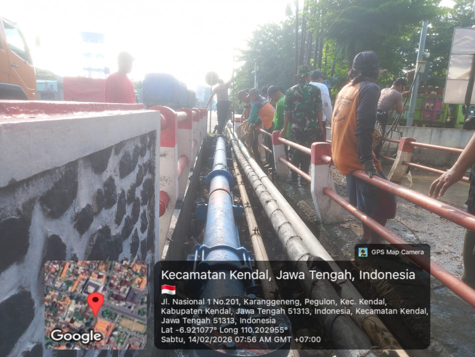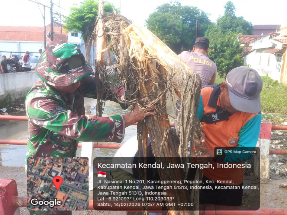 KEGIATAN GOTONG ROYONG BERSIH-BERSIH SUNGAI MASJID AGUNG KENDAL BERSAMA KAPOLRES DANDIN DAN DLH BESERTA PELTONNYA , MASING-MASING 1 PERSONIL PERKELUR