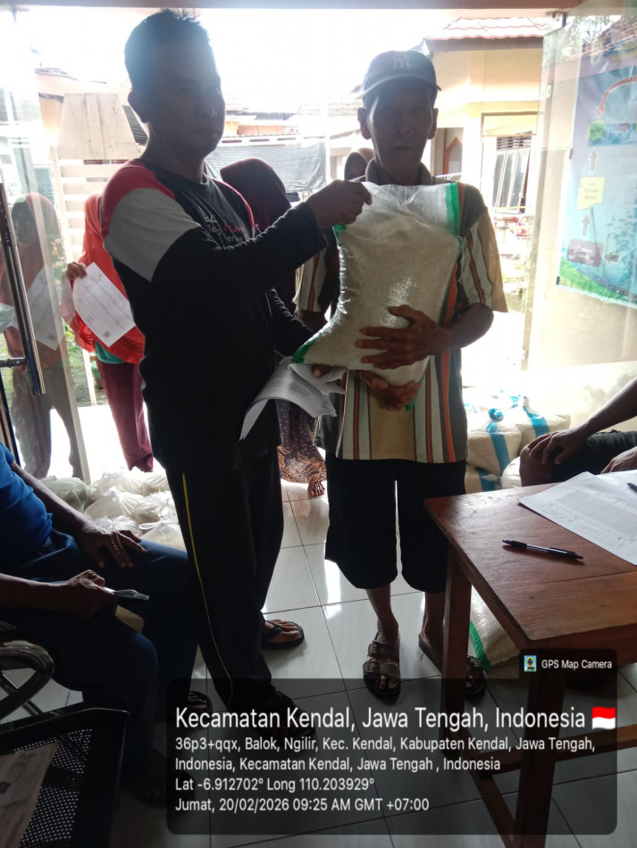 PENYALURAN BANTUAN PANGAN BERAS DARI DINAS PERTANIAN DAN PANGAN KABUPATEN KENDAL KE MASYARAKAT BALOK YG TEDAMPAK BANJIR